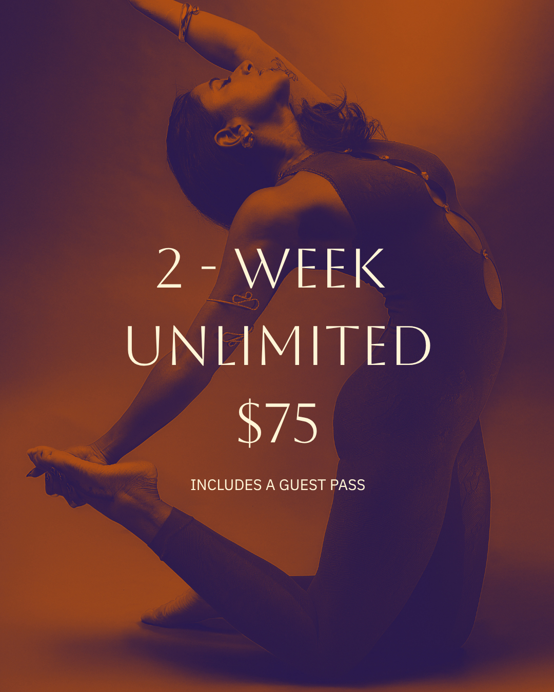 A 2-week unlimited pass created for first-time students. Enjoy full access to all Yoga, meditation, and sound classes, plus one complimentary guest pass.